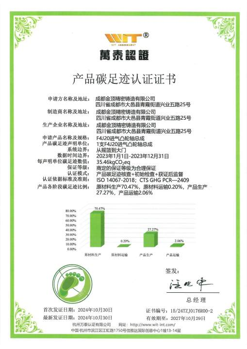 成都金頂精密鑄造有限公司是一家專業的制造型的企業。公司位于成都大邑經濟開發(fā)區,投資金額1.6億元,占地面積80畝;為SGM、PSA、MAZDA、奇瑞汽車、廣汽集團、吉利汽車、北汽集團等國內主流汽車企業進行配套,并通過客戶全球采購平臺銷往歐洲、北美市場。